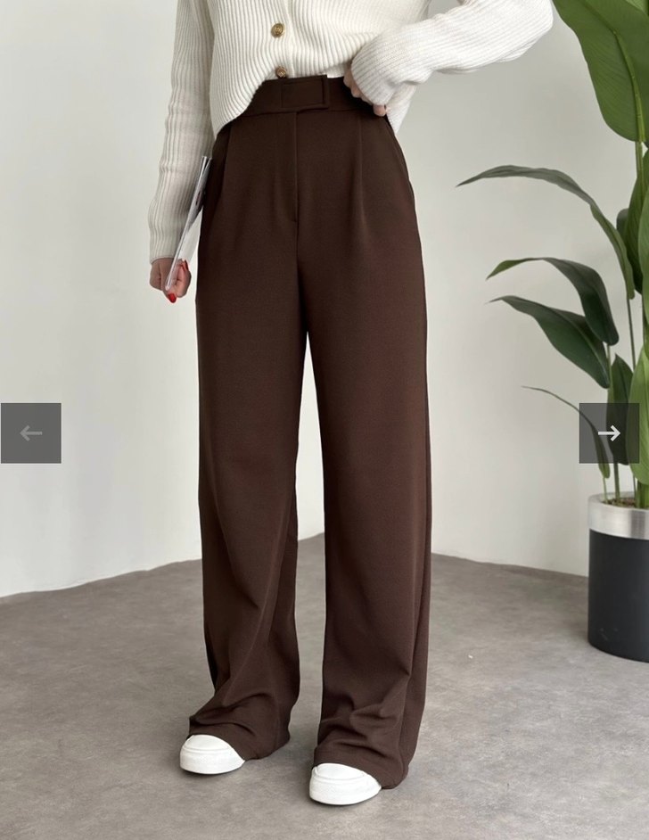 Kemer Detaylı Kahverengi Kadın Kumaş Pantolon