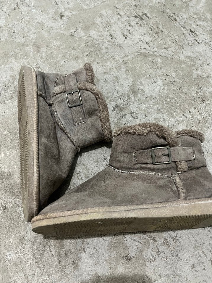 Kahverengi süet kadın bot, yumuşak sıcak astar, kama topuk ve kemerli detaylı, rahat ve şık günlük kullanım için uygun.
