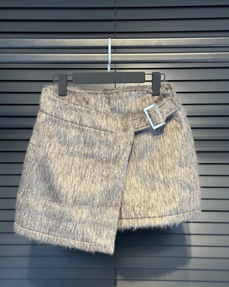 Kemer Detaylı Kaşe Kısa Bej Mini Şort Etek