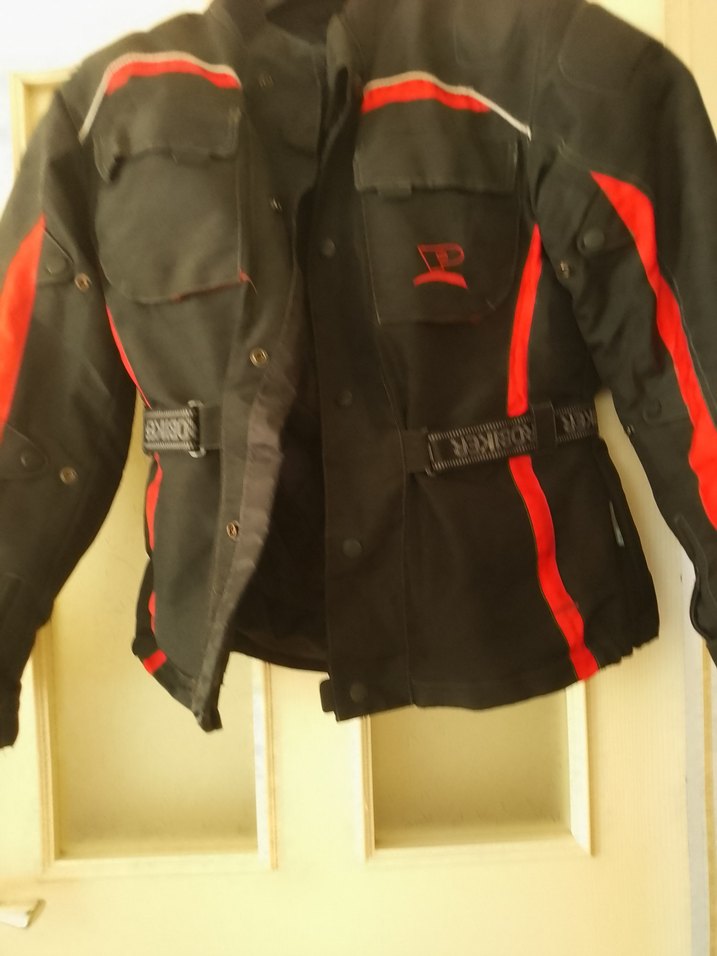 Kemerli, dar kesim biker ceket, notlu yaka ve uzun kolludur. Sentetik kumaştan, koyu kırmızı-siyah renklidir, rock punk tarzına uygundur.