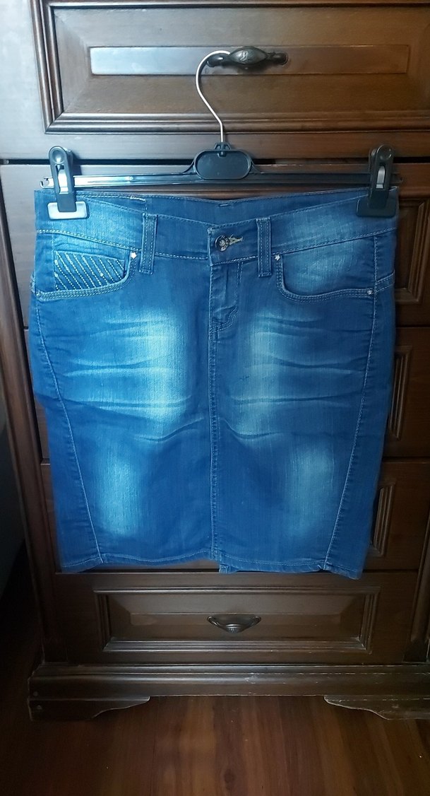 Kemer Detaylı Koyu Mavi Denim Kalem Etek
