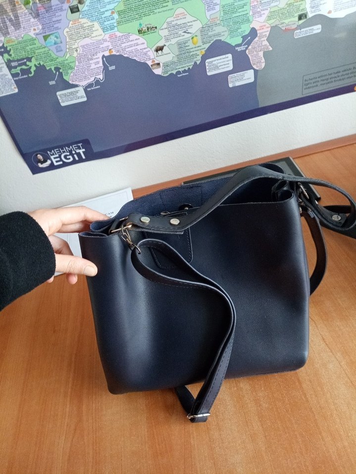 Kemer Detaylı Lacivert Deri Kadın Çanta