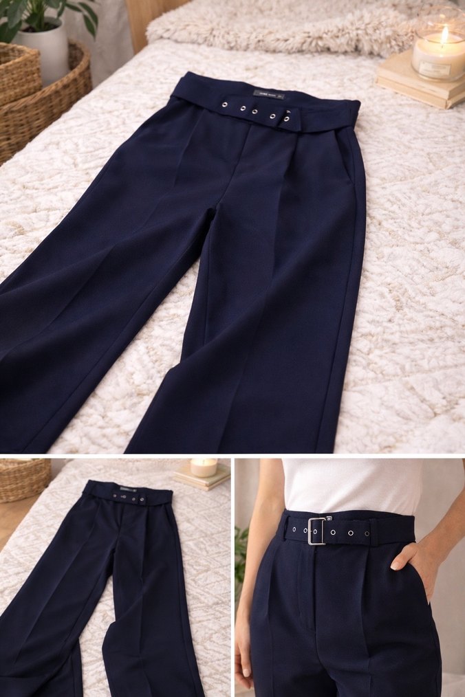 Kemer Detaylı Lacivert Kadın Kumaş Pantolon
