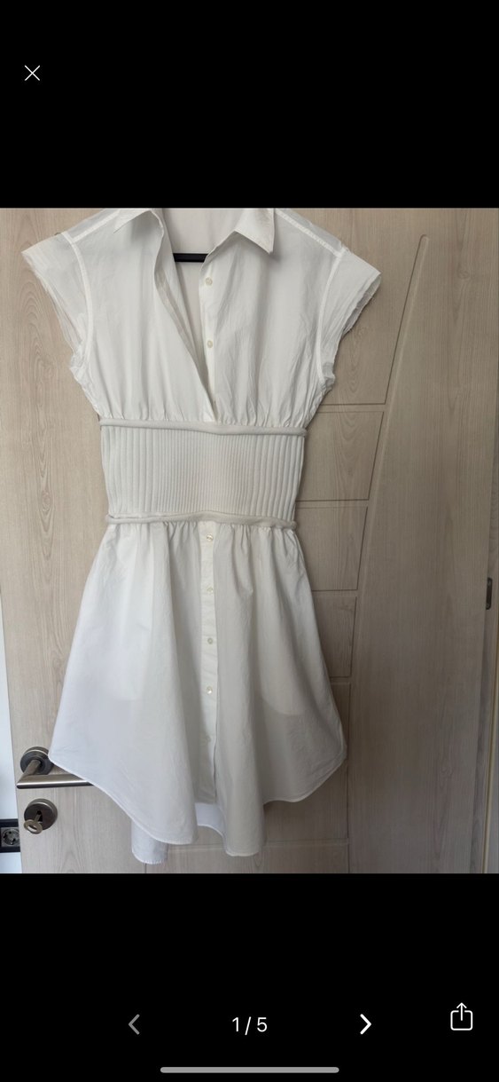 Beyaz midi elbise, V yaka ve kolsuz tasarıma sahiptir. Kemer detaylı, beli oturan şık bir siluet sunar. Günlük kullanıma uygun, bohem Paris tarzında bir model.