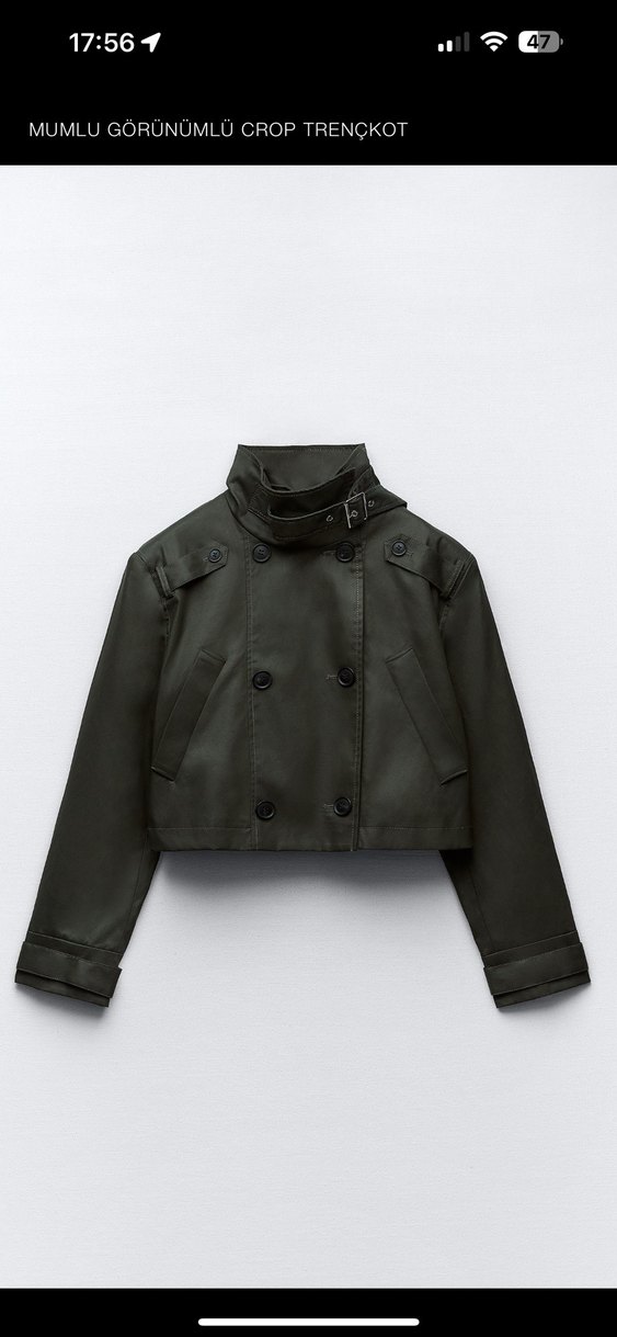 Haki kısa mumlu trençkot, kemerli Regular fit ve uzun kollu, günlük kullanıma uygun. Etiketli yanlış basılmış s beden ürün