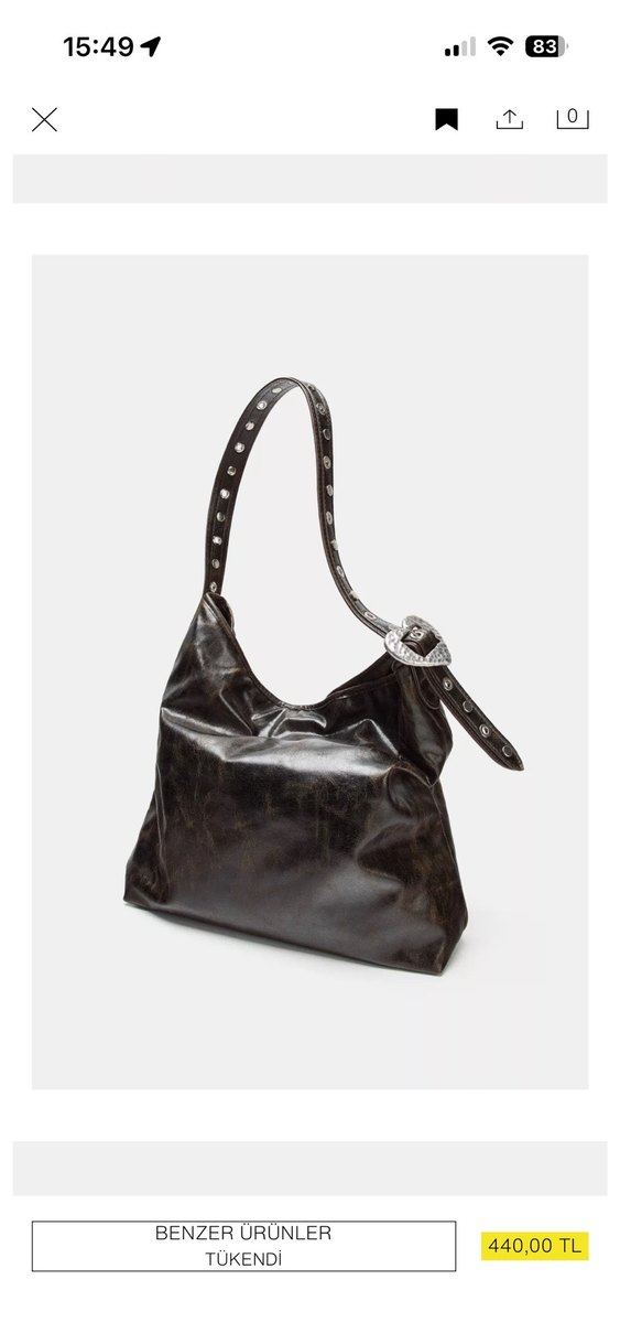 Bu kadın çantası, kemerli askısı ve parlak kahverengi derisiyle biker tarzında, Paris etkisi taşıyan düz yüzeye ve geniş yapıya sahiptir.