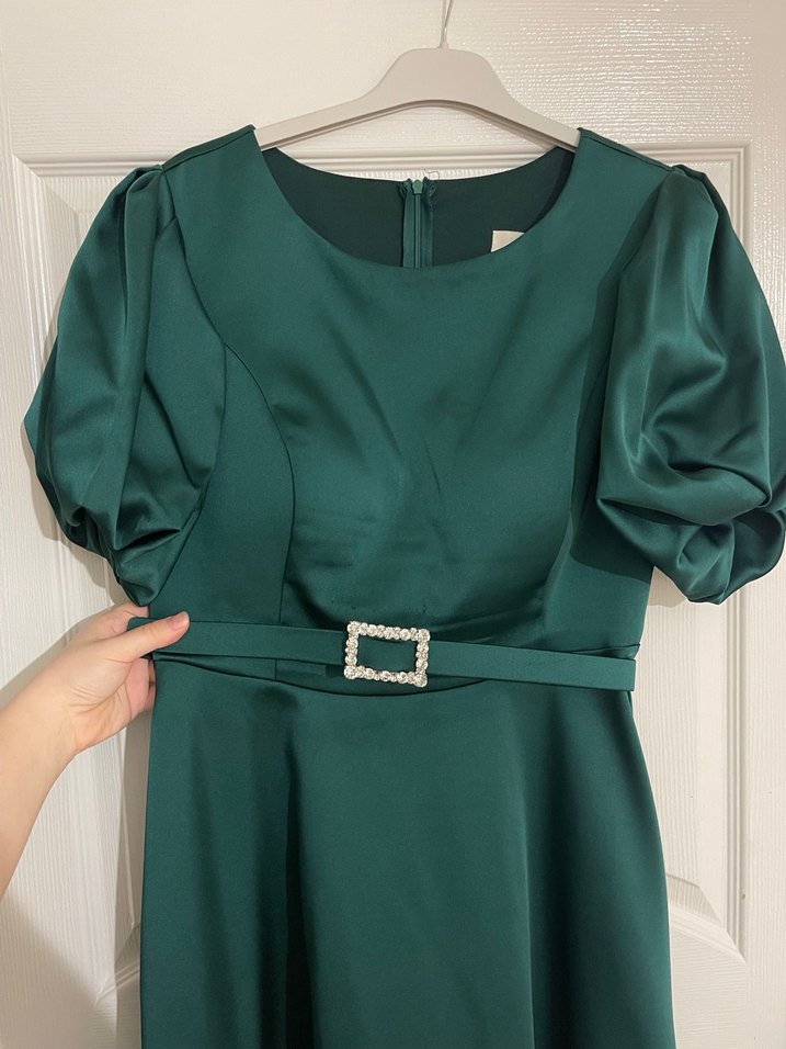 Kemer Detaylı Parlak Yeşil Midi Elbise
