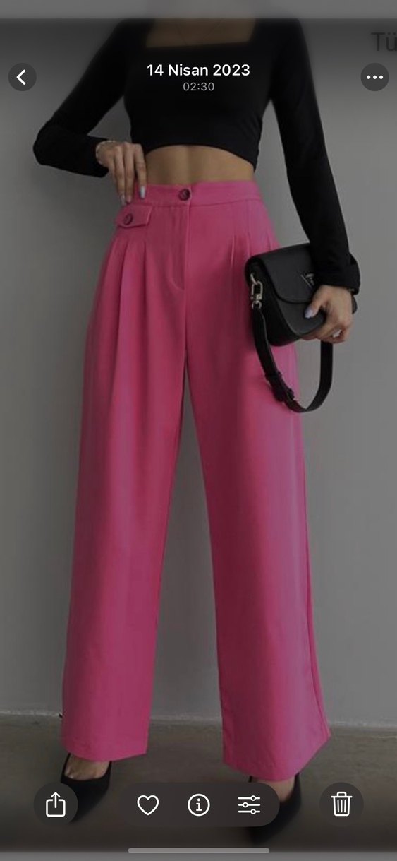 Koyu pembe renkte, kemerli ve salaş kesim kumaş pantolon. Midi boyda, desen içermeyen, günlük kullanıma uygun şık bir sokak stili.