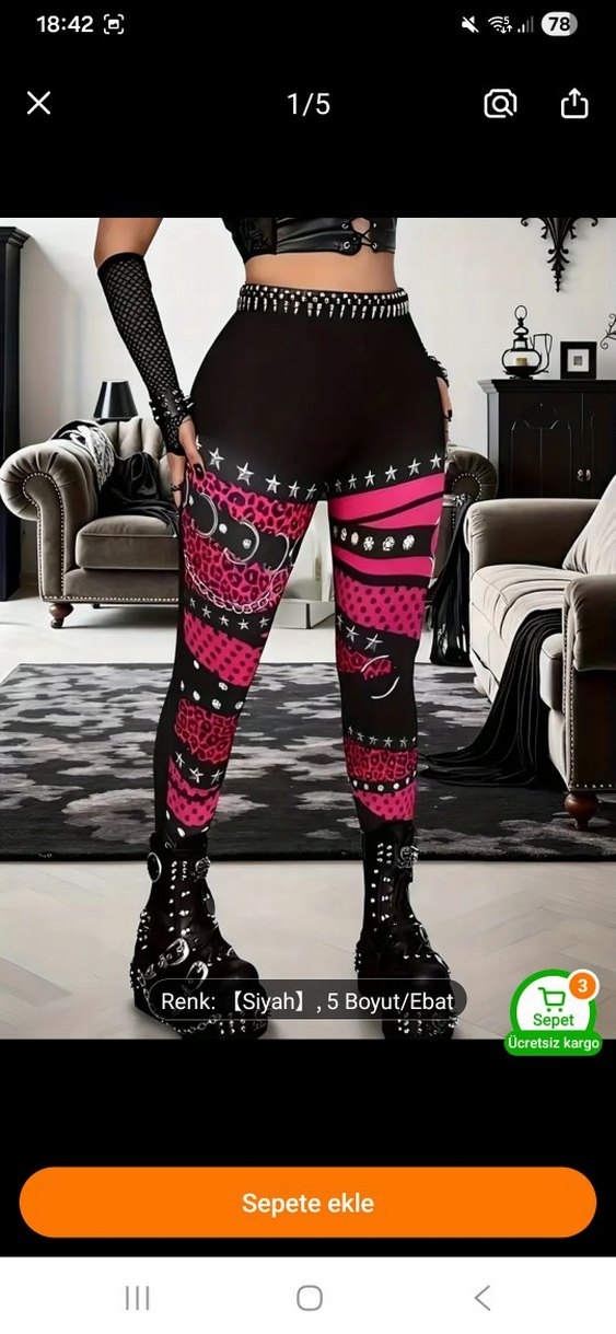 Kemer detaylı, desenli, koyu pembe ve siyah renklerde, midi boy rock punk tayt. Sentetik kumaştan, emo gotik punk hemen teslim esnek l xl xxl bedenlere uygun