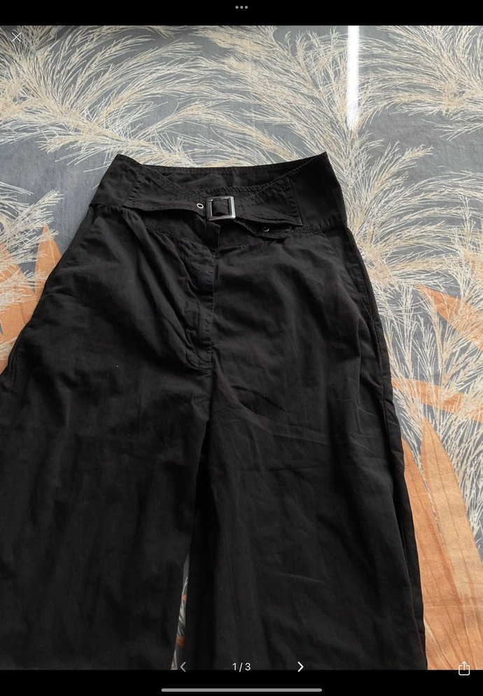 Kemer detaylı, rahat kesim keten kumaştan yapılmış kahverengi kadın pantolonudur. Normal midi boyda, sade ve günlük sokak stili için uygundur.