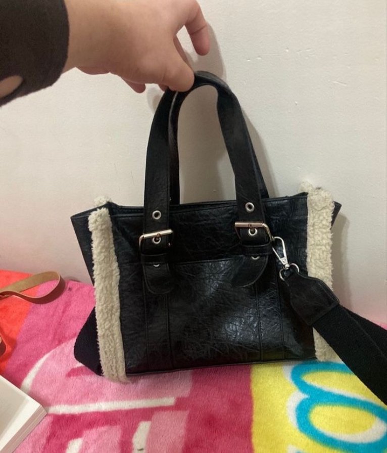 Kemer detaylı siyah deri kadın çanta, yumuşak yan süslemeleri ve hem sap hem çıkarılabilir askı ile çok yönlü kullanıma uygun.
