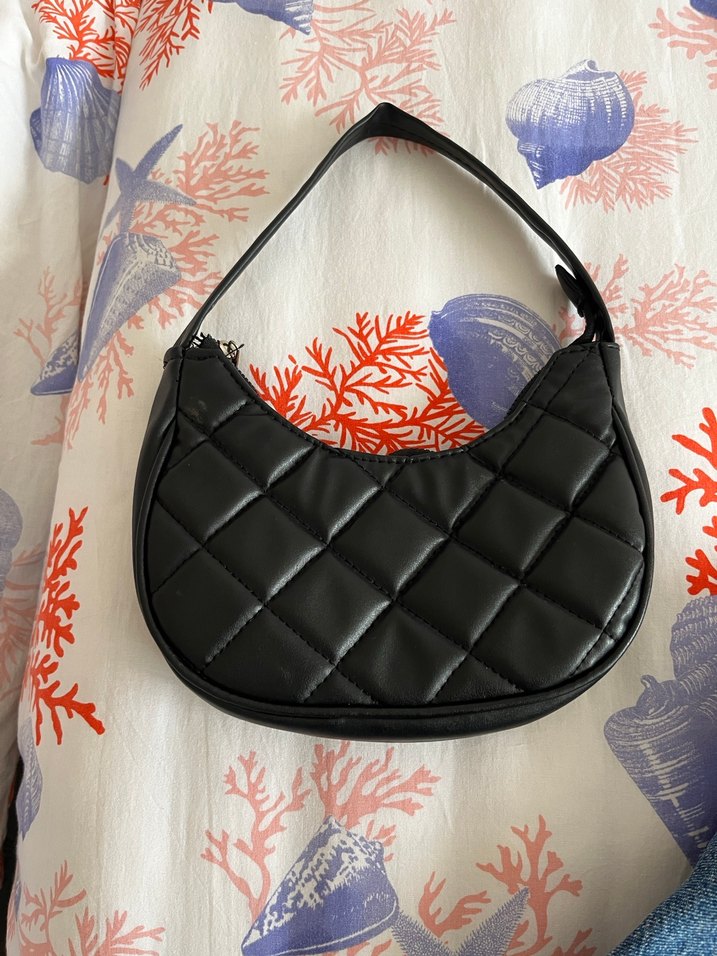 Siyah deri çanta, kapitone desenli ve kemerli askılıdır. Paris sokak modası tarzı ve günlük kullanıma uygun, trendi ve rahat bir tasarıma sahiptir.