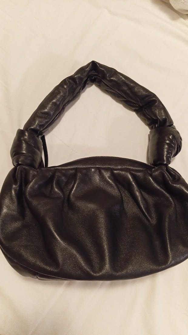 Kemer detaylı sapı olan siyah deri kadın çantası, yumuşak ve desensiz tasarıma sahiptir, günlük kullanım için uygundur. Moda ve gotik tarzını yansıtır.