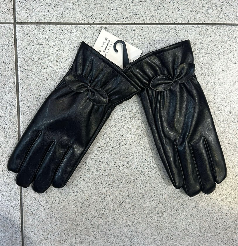Kemer Detaylı Siyah Deri Kadın Eldiven