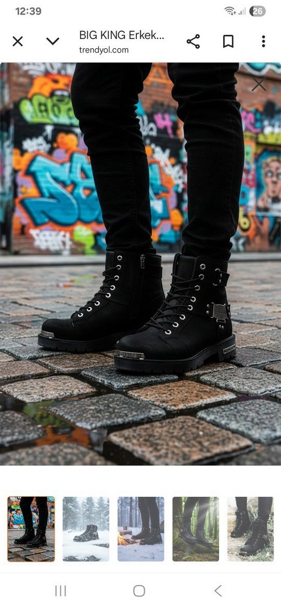 Kemer detaylı, kamuflaj desenli siyah erkek bot. Kauçuk malzemeden üretilmiş, günlük kullanıma uygun, sokak stili ve rock punk havasında.