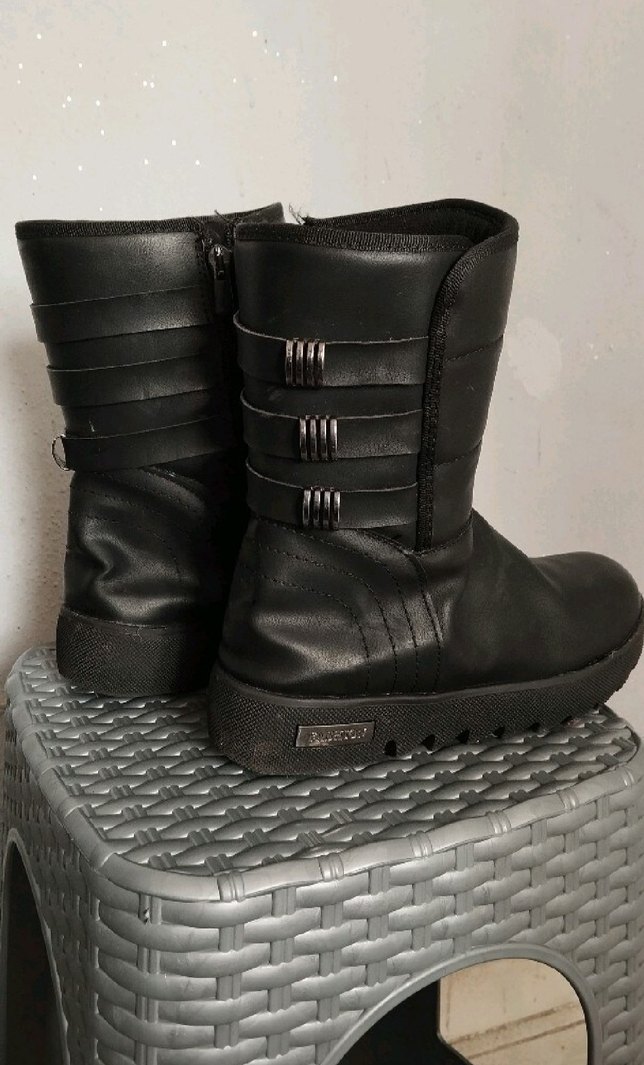 Siyah kauçuk gotik kadın botları, kama topuklu ve kemerli kayışlıdır, günlük kullanım için uygundur. karda sayılı bile giyilmedi küçük geldiği için satıyorum.37 numaradır.