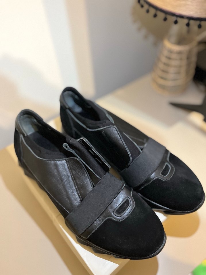 Kemer detaylı, dolgu topuklu siyah kadın ayakkabısı, çağdaş ve sokak stilini bir araya getirir. Günlük kullanım için uygundur. Sıfırdır 42 no