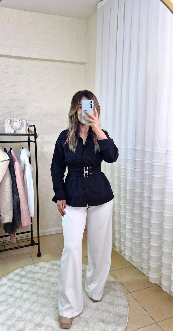 Kemer Detaylı Siyah Kadın Gömlek. S.M.L bedenler mevcut