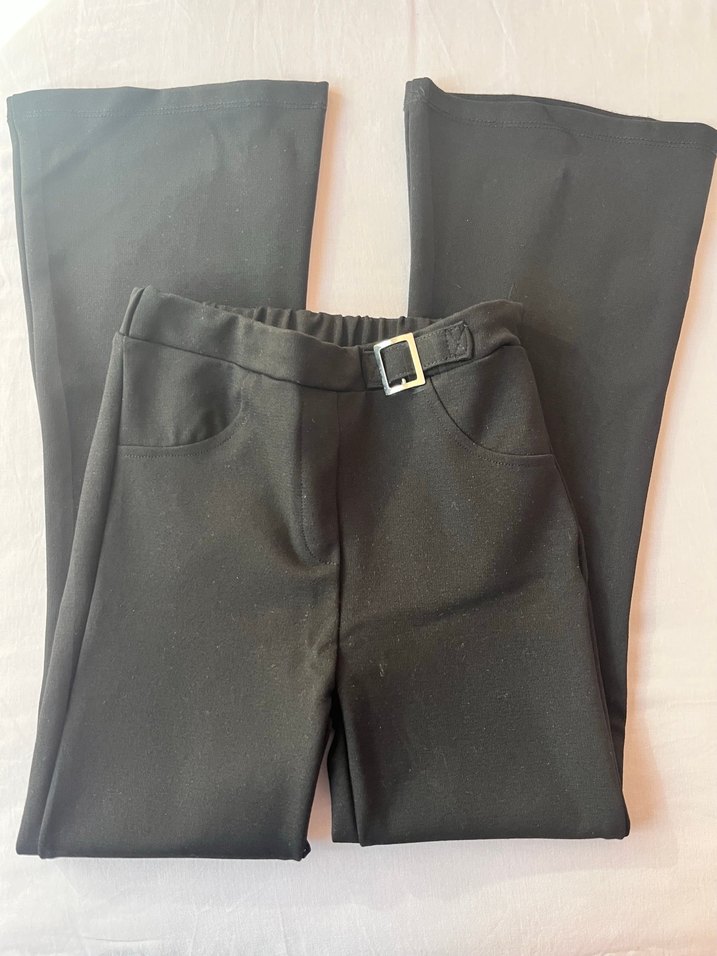 Kemer tokalı, siyah sentetik kumaştan yapılmış, normal boy ve regular fit kadın pantolon. Ofis ve sokak stiline uygundur.