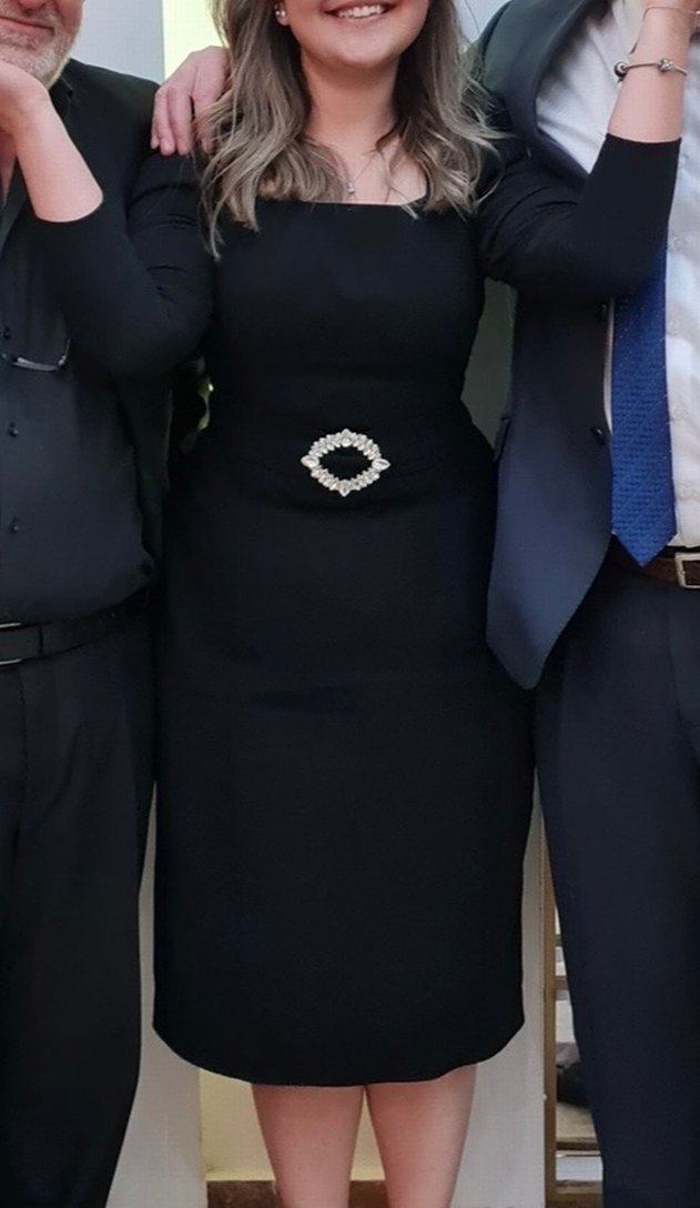 Kemer Detaylı Siyah Midi Elbise