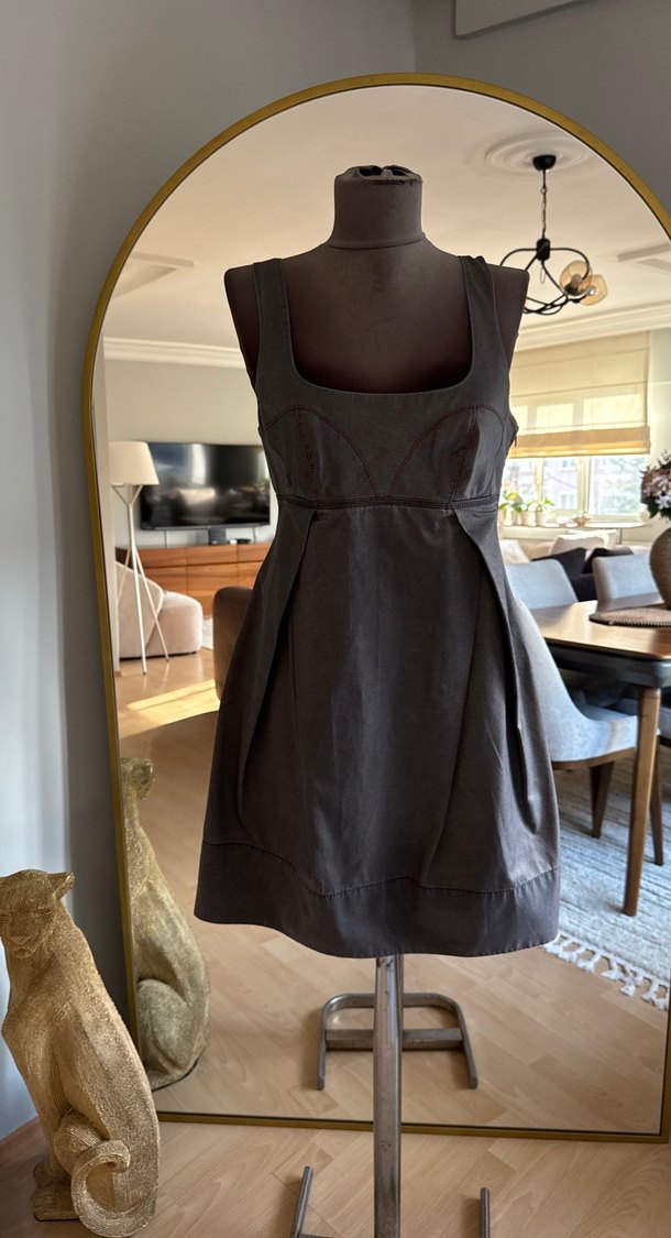Kemer Detaylı Siyah Midi Elbise