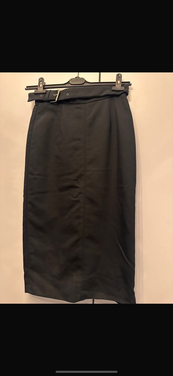 Kemer detaylı, siyah midi etek. İnce kesimli ve ipeksi dokulu. Ofis ve gotik tarzlara uygun, desensiz model.