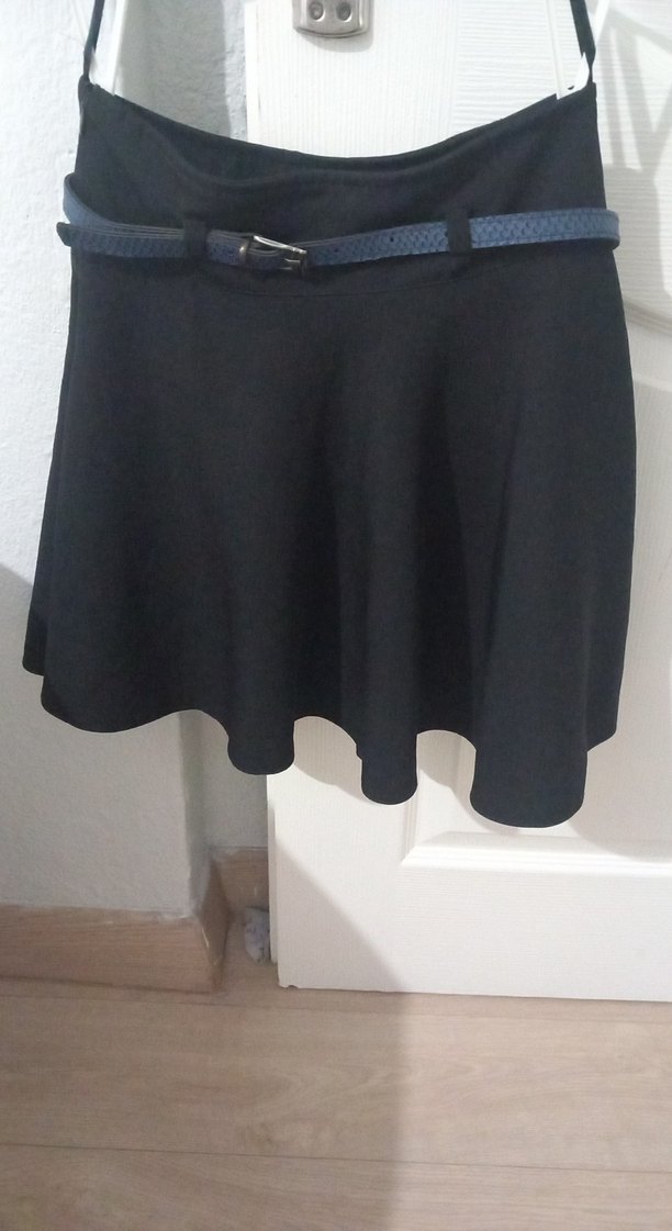 Kemerli, siyah midi mini etek, ince kemerle detaylandırılmış ve yumuşak sentetik kumaştan yapılmıştır. Günlük rahat kullanıma uygundur.