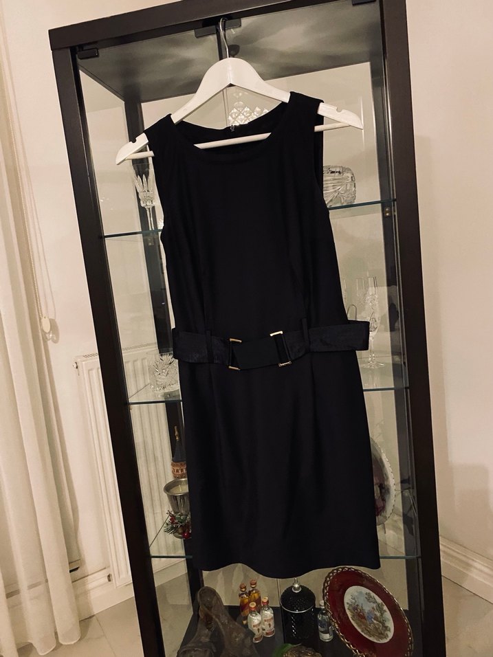 Siyah, kemerli ve bisiklet yakalı bu dar kesim minielbise, goth tarzını yansıtan şık ve sade bir tasarıma sahiptir. Kolsuz modeliyle zarif bir görünüm sunar. Tertemiz ve sorunsuz elbise içi astarlı,sadece bir iki kez giyildi,kolsuz ,krndinden kemeri var.şık bir kumaş elbise boy. 86,göğüs 45.2,bel 39.2 cm.