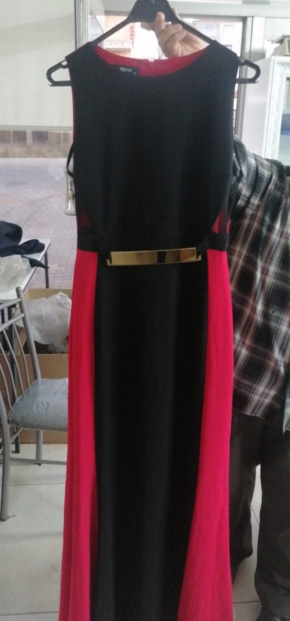 Kemer Detaylı Siyah Uzun Kadın Elbise