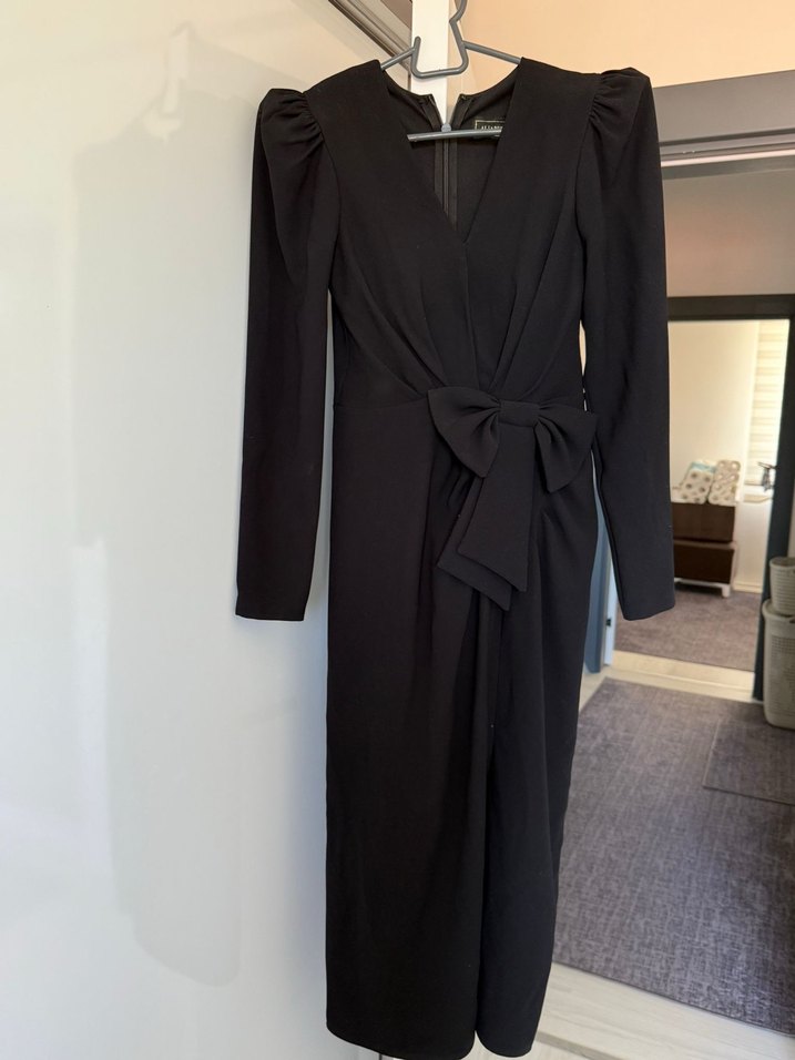 Kemer Detaylı Siyah Uzun Kollu Kadın Elbise