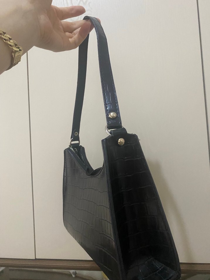 Siyah yılan derisi desenli, kemerli askılı kadın deri çanta. Klasik zarafet ile sokak stilini bir araya getirir, günlük kullanıma uygundur.