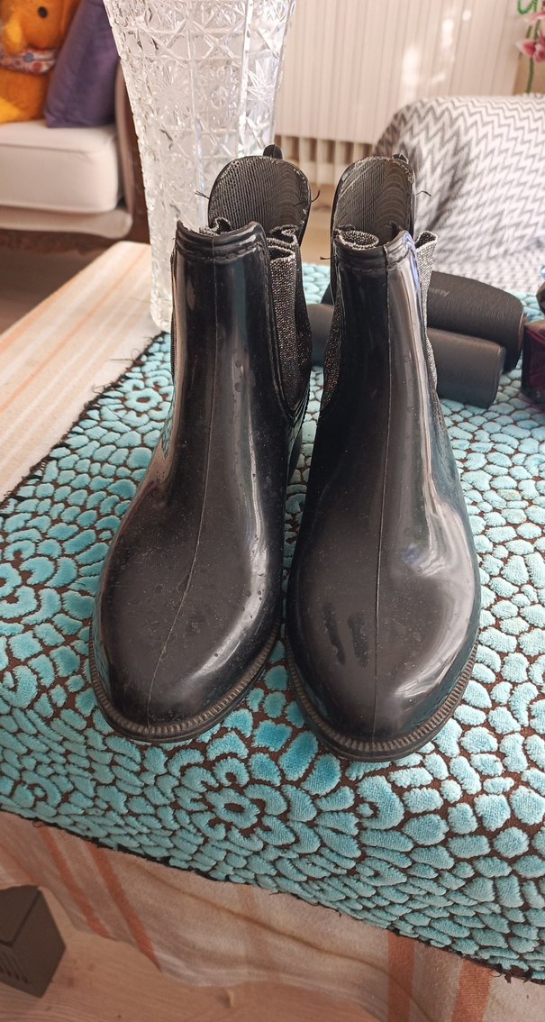 Kemer Detaylı Siyah Yılan Desenli Kadın Bot lastik yağmur botu