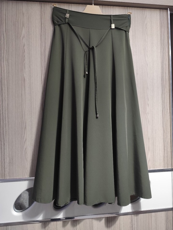 Kemer Detaylı Uzun Haki Kadın Etek