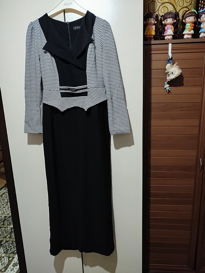 Kemer Detaylı Uzun Siyah Gri Kadın elbise