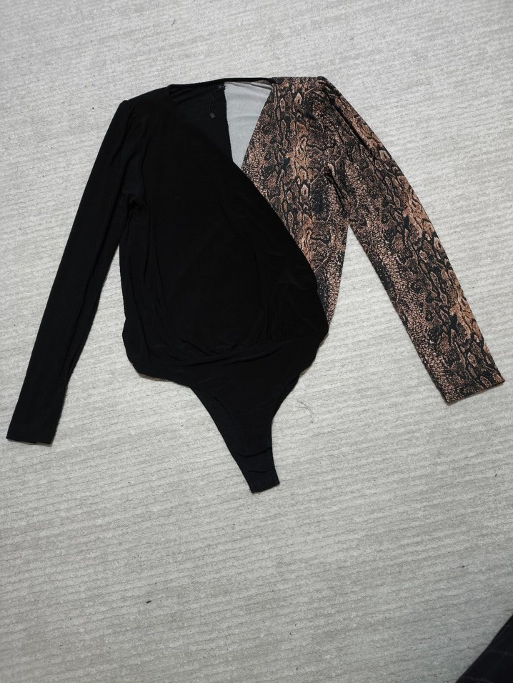 V yakalı, yılan desenli tek kollu, kemerli ve midi boy, sentetik yumuşak kumaştan yapılmış, fitted kesim kadın bluz.