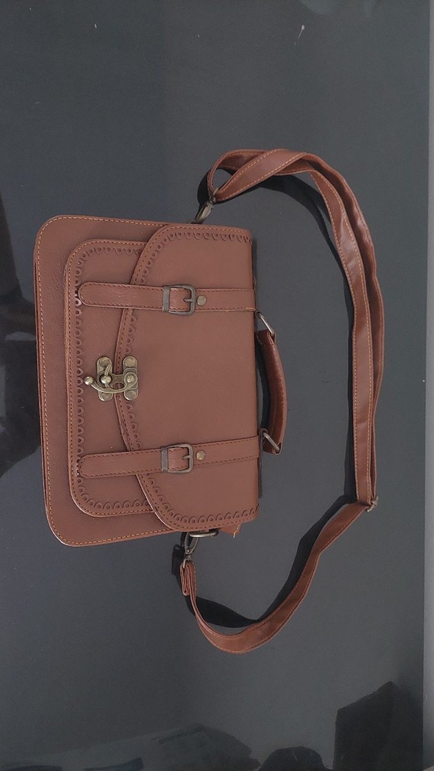 Kemer detaylı, koyu bej renkli deri kadın çantasıdır. Vintage bohem tarzda, günlük kullanıma uygundur. Uzun ayarlanabilir askısı vardır. Ürün görsellerde görüldüğü gibidir. Çok az kullanıldı. Günlük kullanım için uygundur. Üstte elde taşıma kulbu ayrıca uzun omuz askısı bulunmaktadır. İçerisinde hem fermuarlı cebi hem fermuarsız cebi vardır. Ayrıca içini tamamen kapatan fermuarı da bulunuyor. İç ve dış yüzeyinde herhangi bir deformasyon yoktur. Astarı kulp kısmı askıları ve fermuarı eksiksiz ve tamdır. Hiçbir kusuru hatası sorunu yoktur. Makul teklifler değerlendirilir.