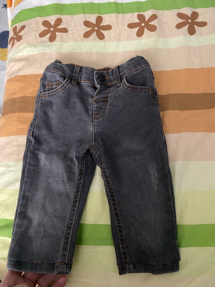 Kemer tokalı, gri renkte, fitted kesim erkek çocuk denim pantolon. Desensiz, günlük kullanıma uygun tarzda.
