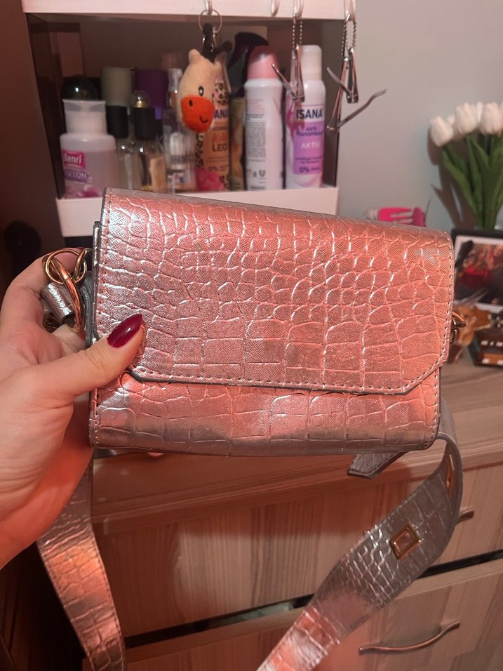 Kemer Tokalı Gri Yılan Desenli Deri Kadın Çanta