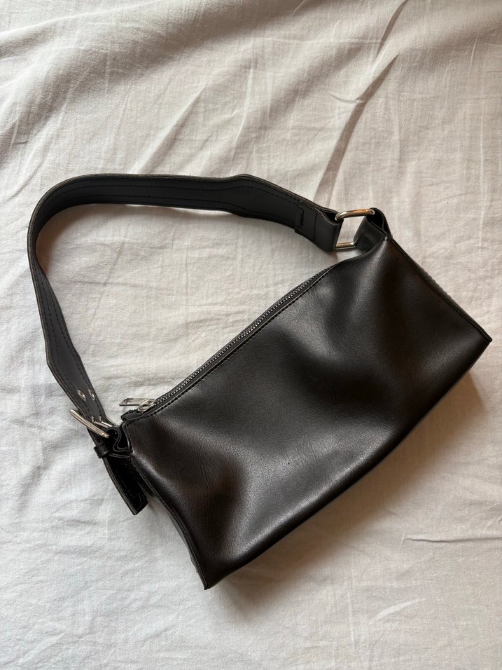 Kemer Tokalı Siyah Deri Kadın Çanta