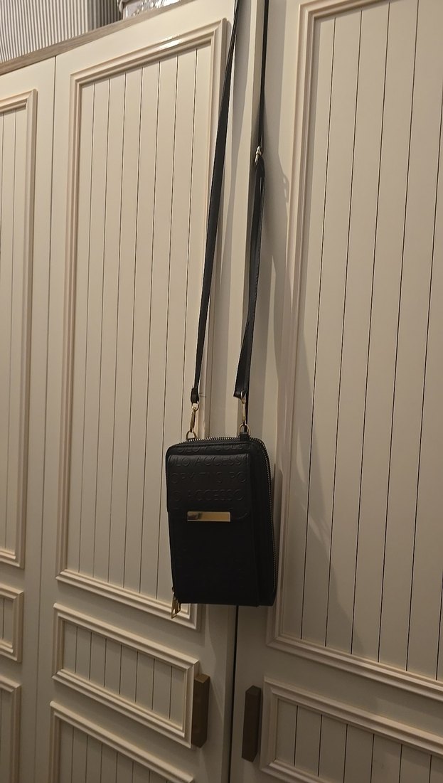 Siyah deri kadın çapraz çanta,kemer tokası ile günlük kullanıma uygun minimalist tarzda.