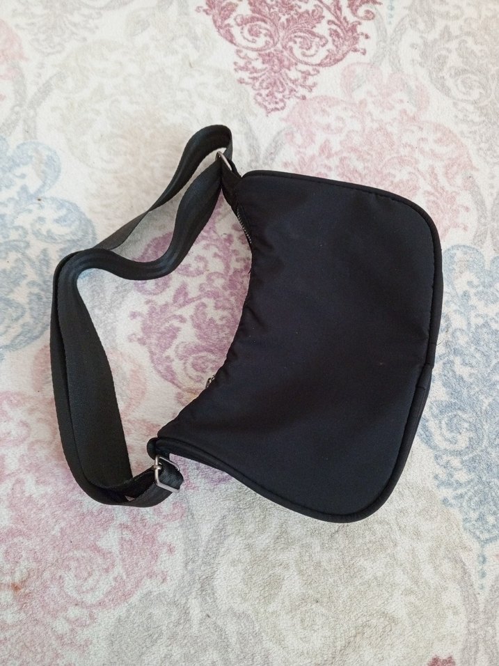 Kemer tokalı kayışa sahip siyah kadın omuz çantası, yumuşak sentetik kumaştan üretilmiştir ve günlük sokak modasına uygundur. az kullanıldı sorunu yok.