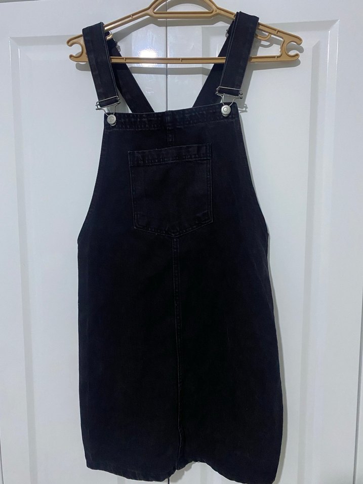 Kemer Tokalı Siyah Midi Denim Tulum S-M beden