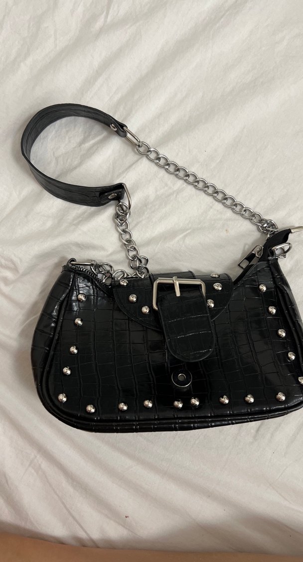 Kemer Tokalı Siyah Yılan Derisi Desenli Punk Çanta