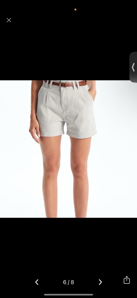 Bej renkli, pamuklu kumaştan yapılmış, kemerli ve bol kesim kadın Bermuda şort. Mini boyda, desen içermeyen rahat bir tasarıma sahip.
