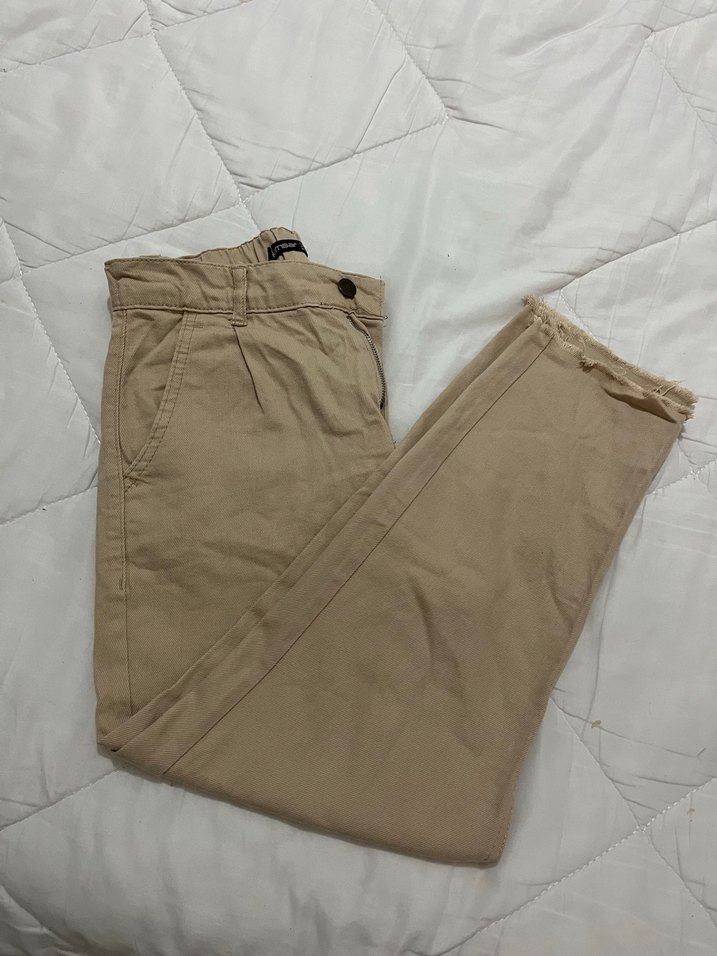 Kemerli, bej renkli keten kumaştan, sokak stiline uygun dar kesim kadın kot pantolon. Günlük giyim için ideal.