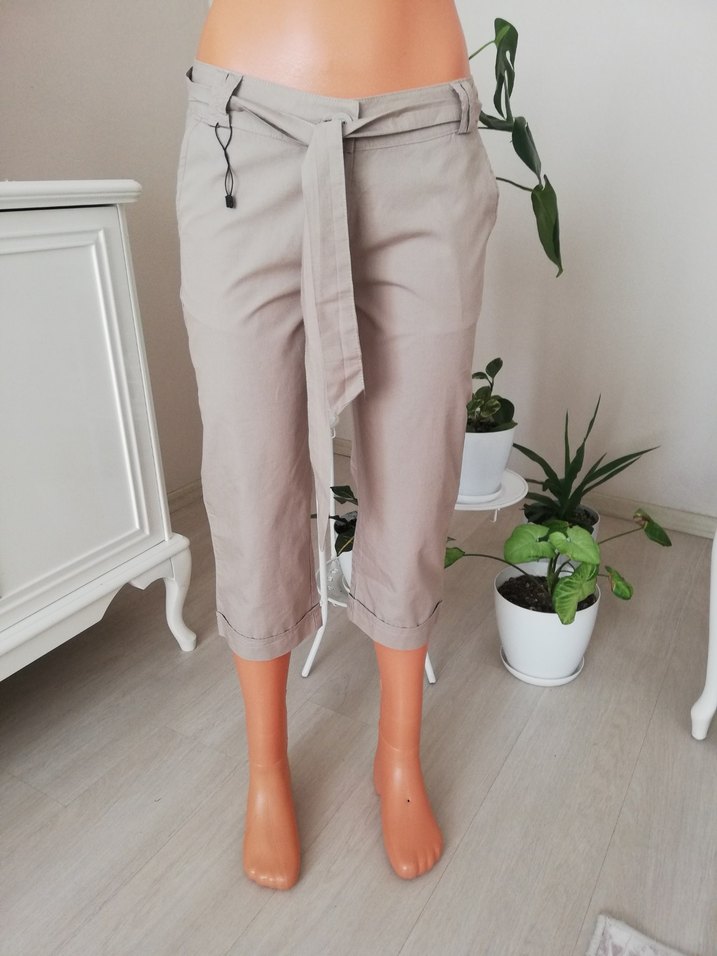 Etiketli yeni üründür.Tüm renklerle kombinlenebilecek rahat ve kullanışlı keten tarzı kapridir.Bel 39cm-Basen 45cm- Boy 73cm'dir.