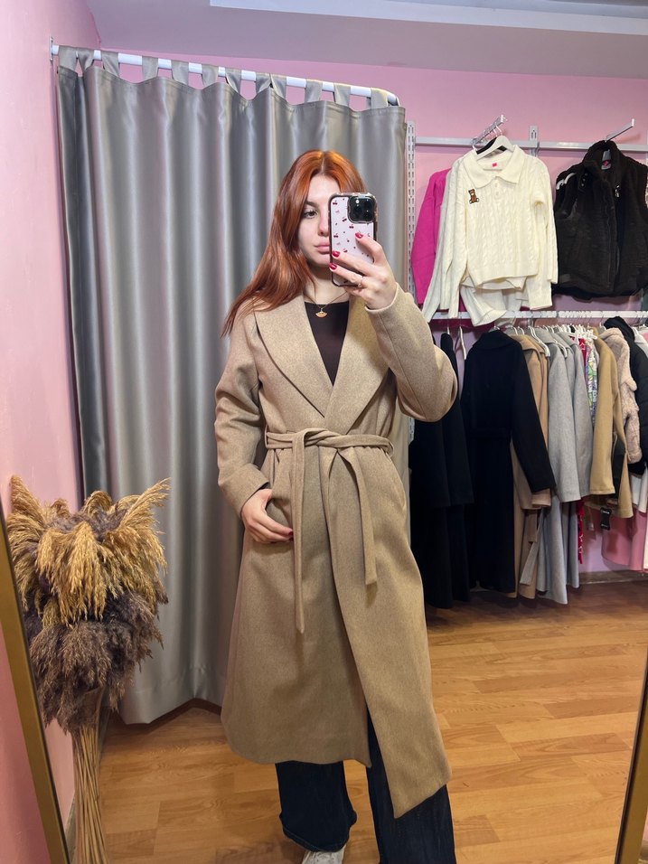 Kemerli, bej renkli uzun kaban, yumuşak ve sıcak kumaştan üretilmiştir. Klasik yakalı ve şık tasarımlıdır.