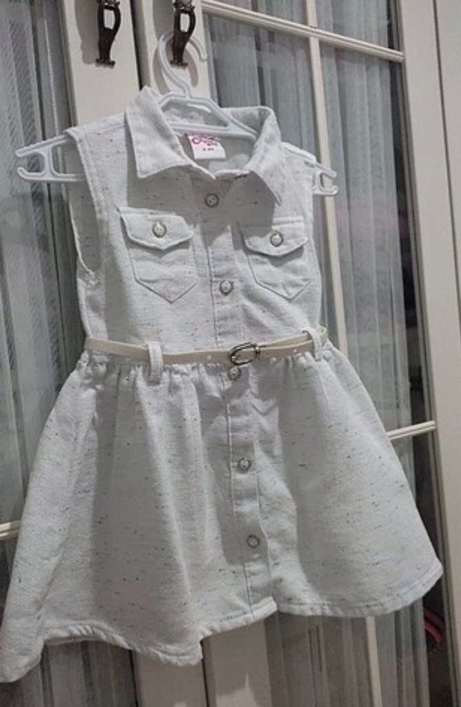 Kemerli Beyaz Kolsuz Kız Elbisesi