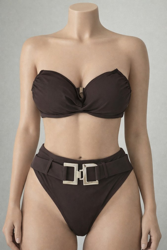Tokalı, kahverengi mini bikini, ince askılı ve vücuda oturan kesimiyle minimalist ve çağdaş bir tarz sunar. ️ marka temsilidir. Polyester. 38 beden.