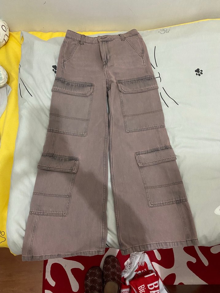Kemerli, bol kesim, midi boy kadın kot pantolon. Kahverengi denim kumaştan, çoklu ceplerle rahat ve günlük kullanıma uygun.